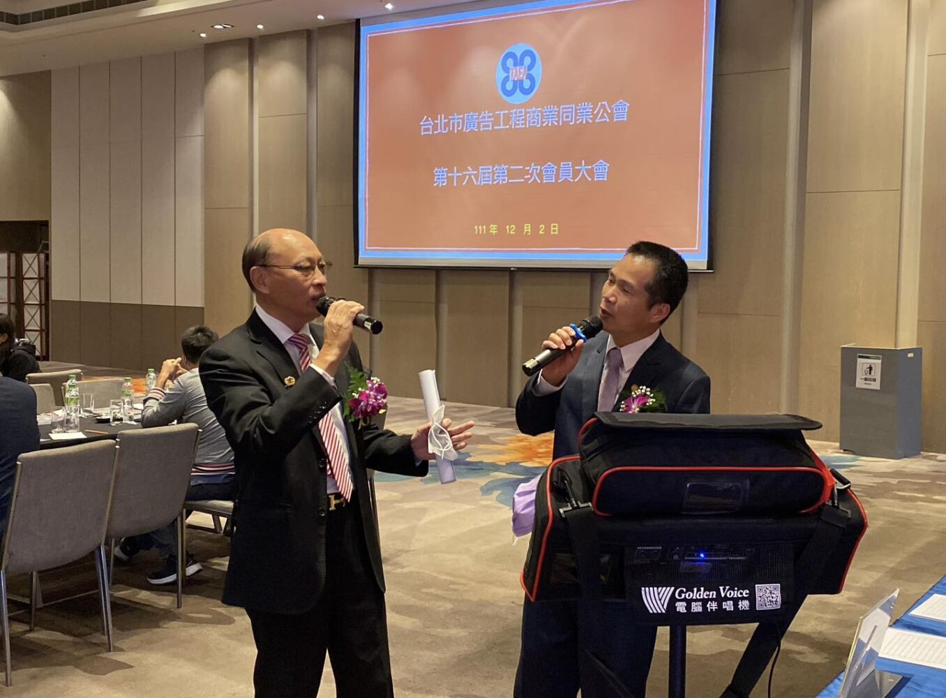 台北市廣告工程商業同業公會第十六屆第二次會員大會暨資材展花絮 2022-12-02 最新消息 台北市廣告工程商業同業公會 第十六屆第二次會員大會暨資材展 謝謝理事長的現場熱情合唱, Supersong600絕對是聚會場合的好夥伴!