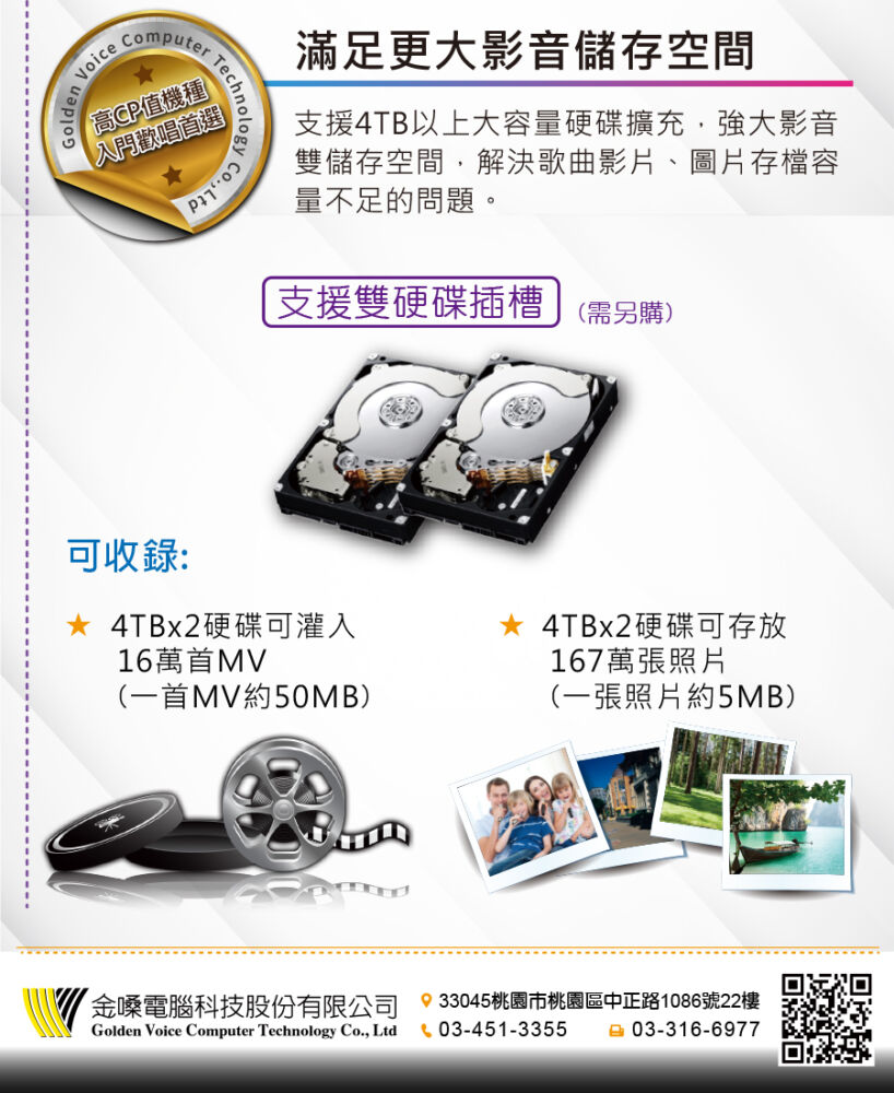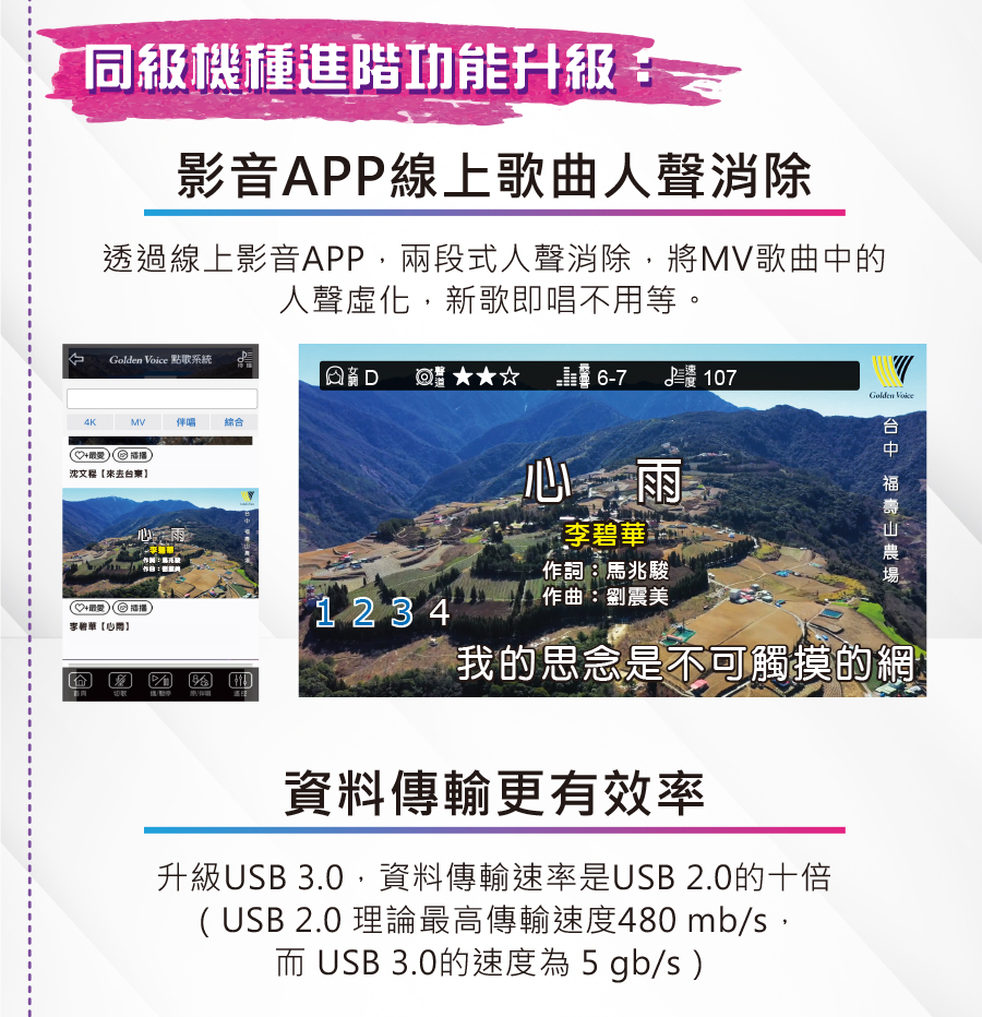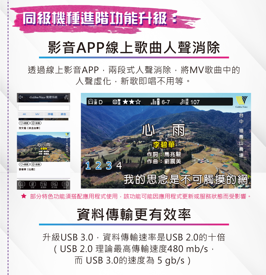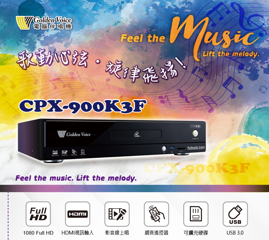 CPX-900 K3F家庭劇院型伴唱機NT$37,500 歌動心弦,旋律飛揚! 分類: 家庭劇院型 描述 規格 檔案下載 描述 規格 項目 CPX-900 K3F 主機尺寸 長438mm寬334mm(含I/O)高94mm(含腳墊) 顏色 黑色 主機重量 4.13Kg(不含HDD) 電源 DC12V/5.0A(Adapter 110~240VAC) 功率消耗 待機功率小於2W 運作中最大消耗功率小於55W 檔案下載 CPX-900 K3F DM-正面 1 file(s) 4.06 MB 下載 CPX-900 K3F DM-背面 1 file(s) 4.02 MB 下載 CPX-900 K3F 說明書 1 file(s) 15.58 MB 下載