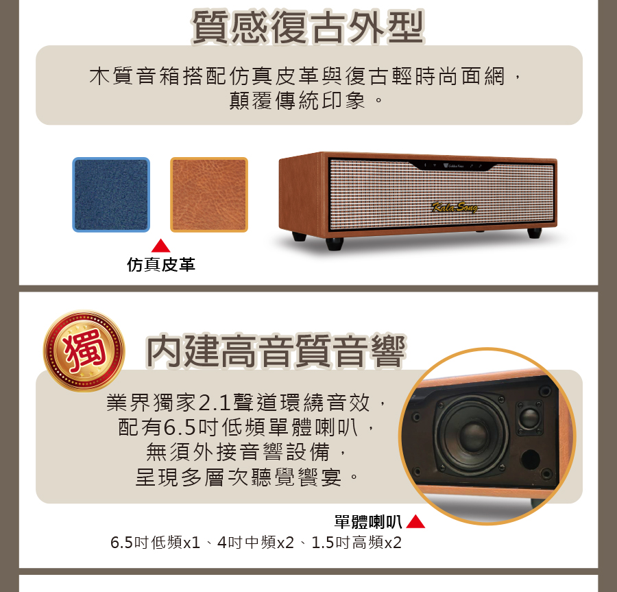 揚聲器單元:1×6.5吋低頻.2×4吋中頻.2×1.5吋高頻